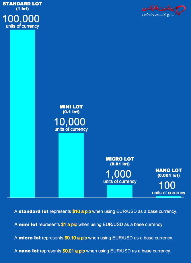 اندازه استاندارد یک لات برابر است با ۱۰۰,۰۰۰ واحد ارز.